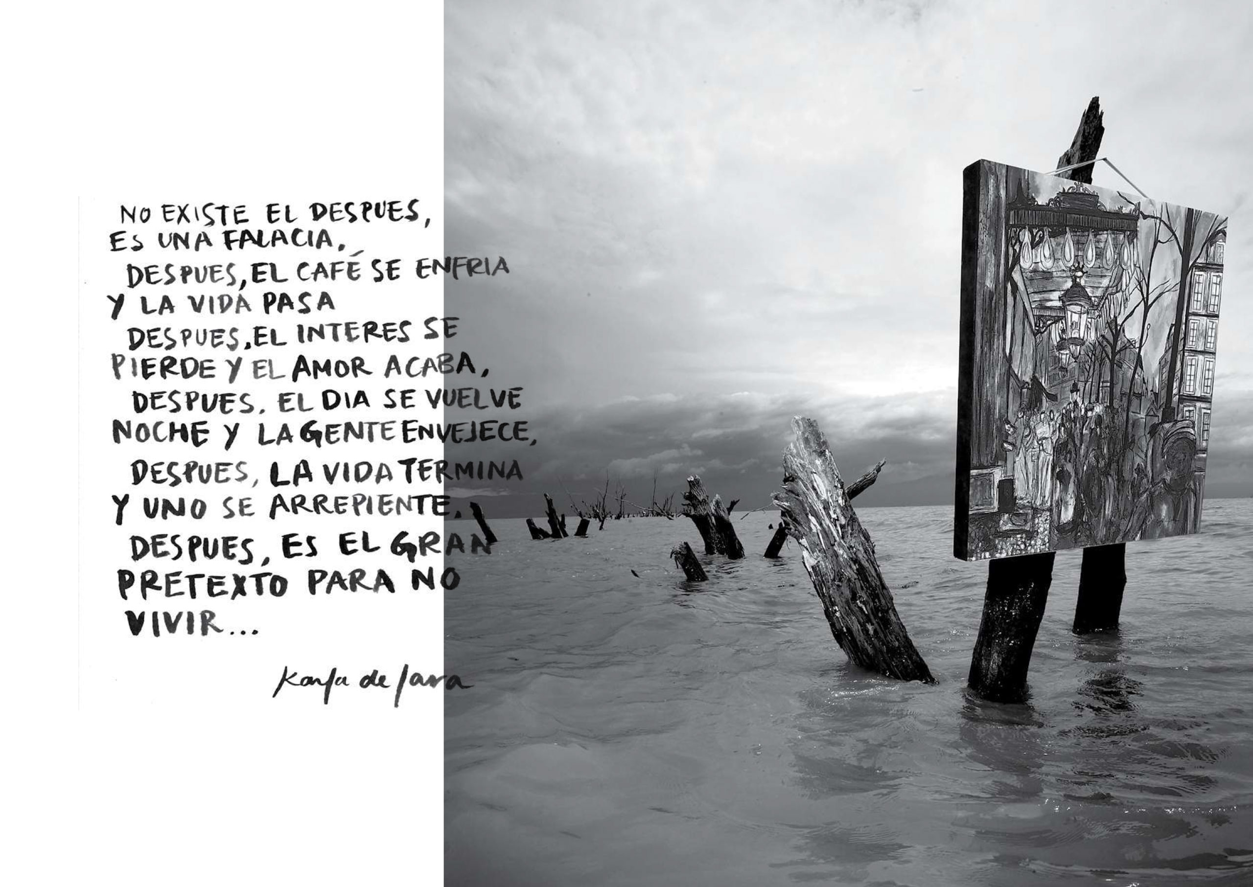 Karla de Lara con su técnica vanguardista asombra y sorprende porque nos envuelve en su luminosidad, sus matices, en esas texturas que se convierten en calles, edificios, cafés y terrazas, tiendas… porque es, a la vez, un mundo real e imaginario del que no querríamos salir. Ese mundo también tiene poesía, porque la necesitamos, para recordarnos que estamos hechos de emociones y que la literatura nos hace resonar en paralelo. ¡Karla es poesía!
