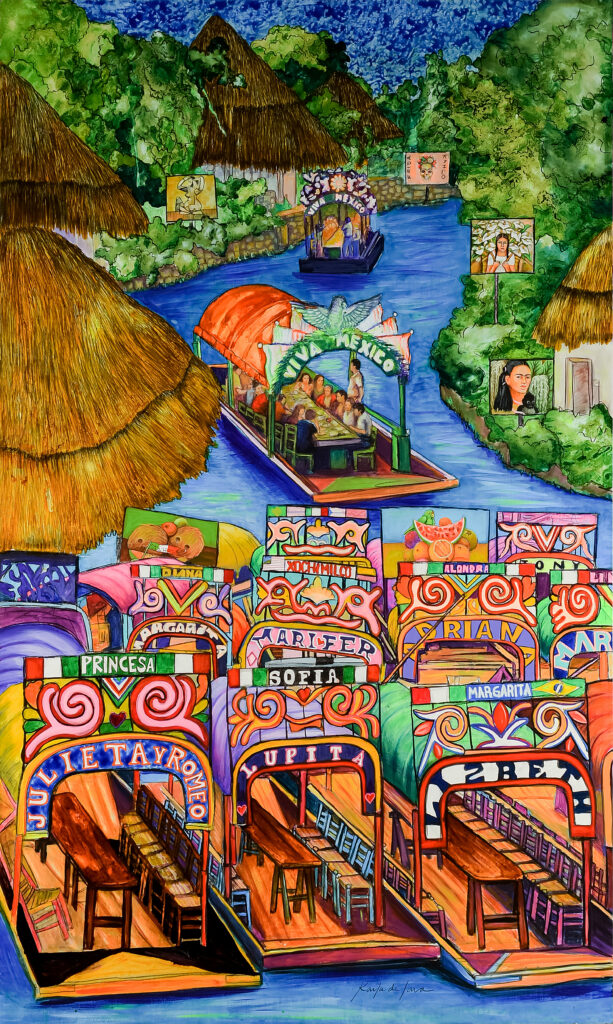Cada obra es una explosión de color, donde convergen múltiples capas de significado y una atmósfera de magia.